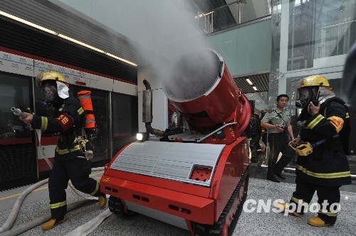 组图:南京举行轨道交通运营突发事件演练(2)