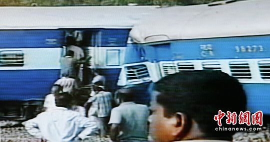 图:印度列车遭袭脱轨 造成多人死伤(2)