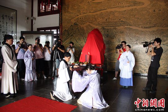 组图:端午节长沙市民穿汉服祭屈原(2)