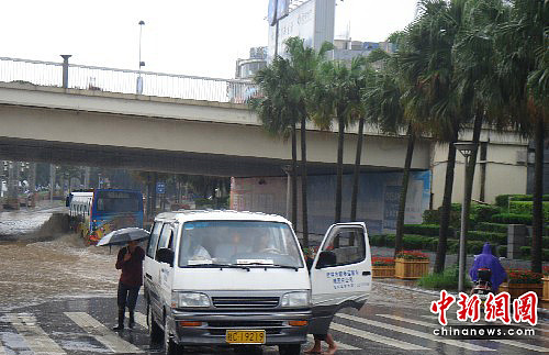 图为桂林市解放桥下一辆熄火的车辆。中新社发 欧惠兰 摄