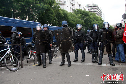 法国华侨华人20日在巴黎举行反暴力维权游行。而在游行群众散去时,因为游行现场附近发生意外状况,致一些华裔青少年不满,并与警察发生摩擦,警察随后发射催泪瓦斯驱赶。中新社发 吴卫中 摄