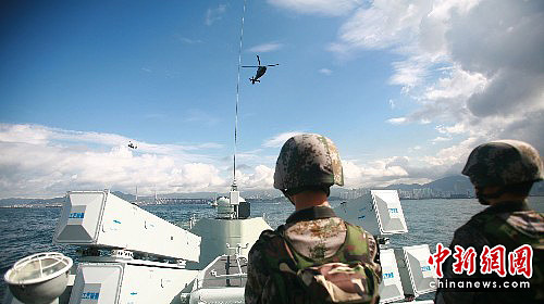 6月21日,驻香港部队组织了进驻香港以来最大规模的海空巡逻联合行动。中新社发 驻港部队 摄