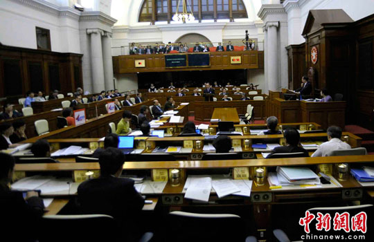6月23日,香港政府在立法会就《2012年行政长官产生办法》的决议案展开辩论。中新社发 谭达明 摄