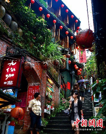 图:台湾九份老街雨天人更多(4)