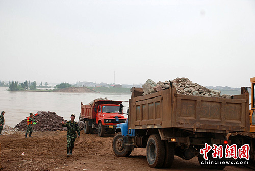 图:江西抚河决堤口封堵紧张进行(3)