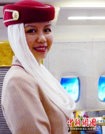 图为北京国际旅游博览会上阿联酋航空小姐。中新社发 钱兴强 摄