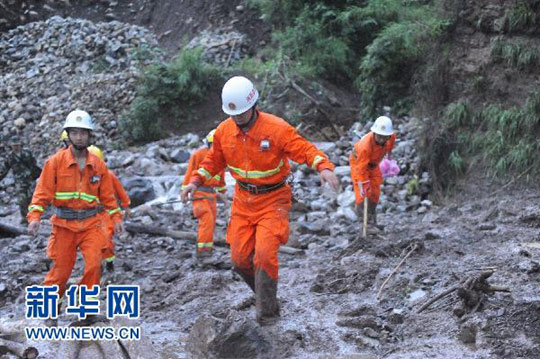 部队官兵赶赴事故现场进行救援,沿途的山体也已开始发生滑坡。欧东衢 摄
