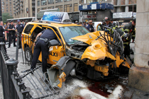 美国出租车撞上地铁站