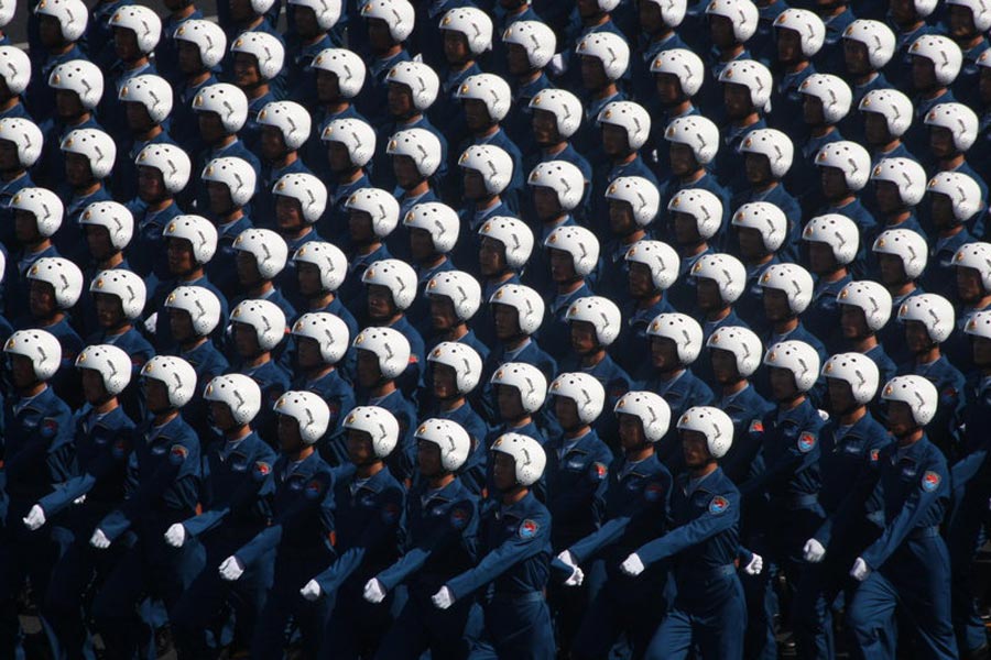 2009年10月1日,北京,首都各界庆祝中华人民共和国成立60周年大会在北京举行。大会结束后举行了盛大的阅兵式。图为接受检阅的徒步方队。 史家民/CFP