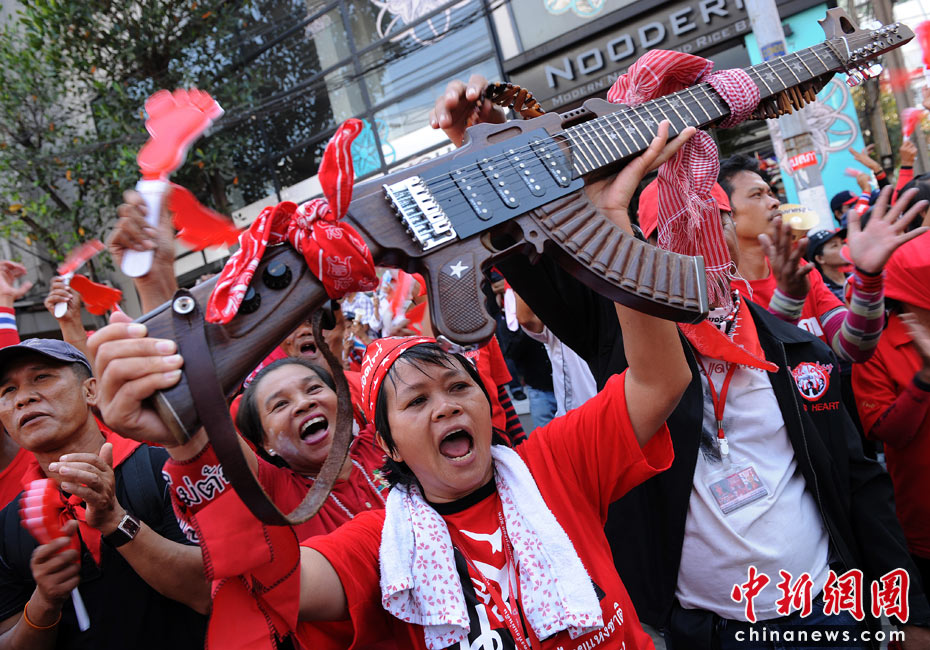 泰国红衫军抬棺材游行
