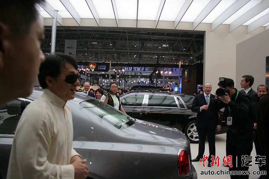 成龙日前亮相了北京车展,引来大批媒体围观。围观的媒体将前门封堵,以至成龙在贵宾室躲藏了10分钟后,在某著名品牌汽车营销副总监的陪同下,才从后门离开会场。 左盛丹/摄