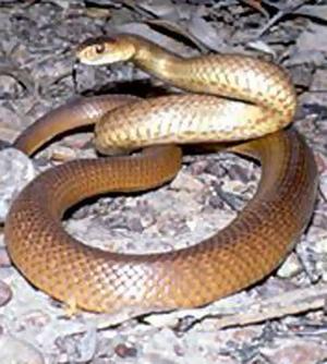 发现于澳洲大陆的东部棕蛇是世界上第二毒毒蛇。不仅能够产生剧毒毒液,东部棕蛇还极富攻击性,遭遇挑衅后这种毒蛇能够发动反复攻击。这种毒蛇有深褐色、橘黄色、黑色,腹部是白色。 东部棕蛇用毒液攻击猎物,有力的缠绕能够使猎物窒息。它们以蜥蜴、青蛙和小型哺乳动物为食。东部棕蛇有剧毒毒液,含有阻止血液凝结的成分,因此被东部棕蛇咬伤后,会有大出血的危险。