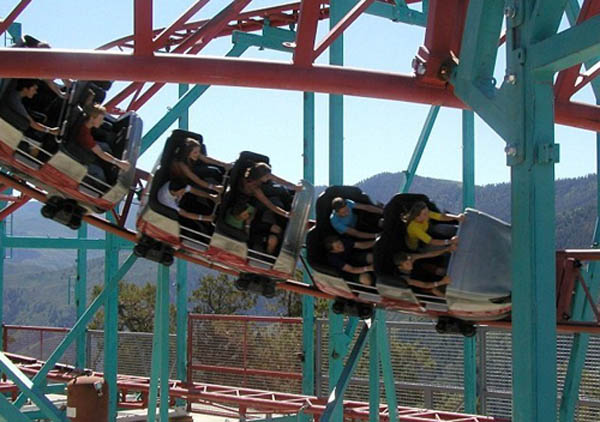 寻求刺激体验的游客接踵而至,争着第一拨乘坐全球最高过山车。游客们搭乘“扣人心弦”先到达艾恩山悬崖的最顶端,此时整个峡谷的壮丽景色一览无余。不过可不要过度沉醉于美景,因为让人肾上腺素激增的急速翻转、上升和俯冲马上开始了。足够胆大的游客睁着眼睛,坐着车在轨道上呼啸而过的同时,还能一瞥格伦伍德峡谷全景,俯瞰科罗拉多河。
