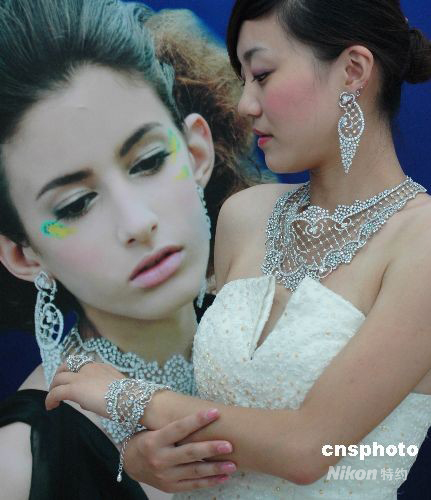 8月7日至9日,专供明年柏林电影节明星佩戴的钻石饰品首站在安徽省芜湖市展出,此次展出的5套饰品总价值2200万人民币。其中,最贵的一套“夏娃之梦”钻饰价值600万元。中新社发 陈立希 摄