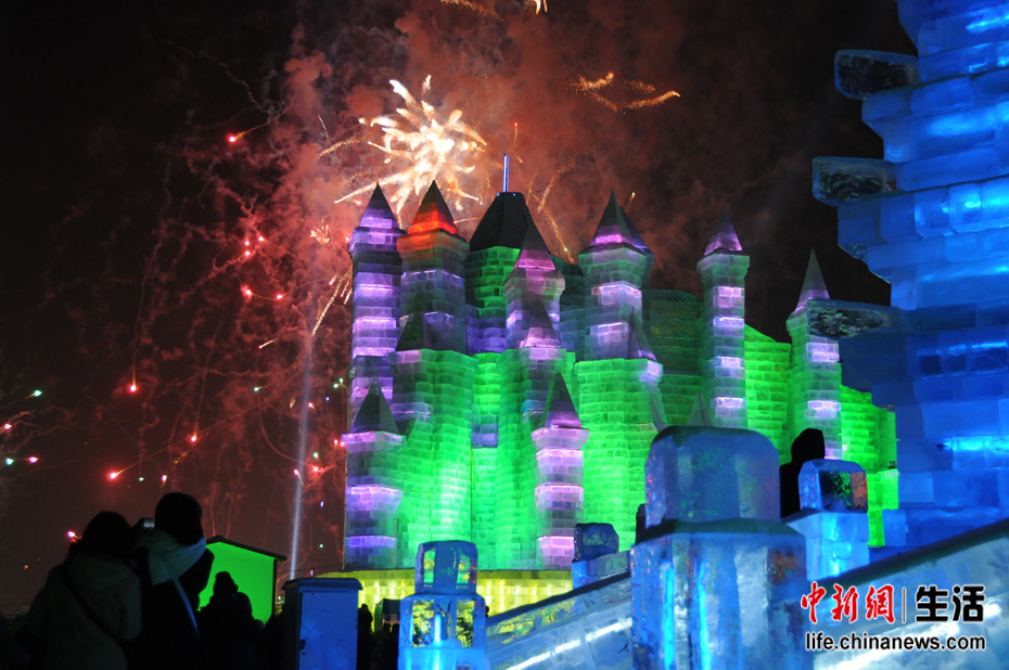夜幕下的哈尔滨:五彩冰灯与绚烂烟火的组合(8)