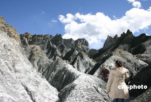 世界罕见的地质奇观——糜棱岩土林惊现四川甘孜藏族自治州道孚县八美镇。据专家考证,八美变色土林的绚丽景色,堪与著名喀斯特石林景观媲美,是目前中国境内发现的唯一如此大规模土林。中新社发 霍潺 摄