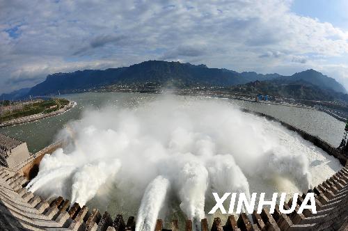 11月7日,江水通过三峡泄洪大坝下泄。当日,三峡工地久雨初晴,三峡工程开启多个泄洪深孔及溢流表孔泄洪。从10月23日开始,长江上游持续降雨,局部地区出现暴雨天气,长江三峡出现冬汛。新华社记者 安希雅 摄