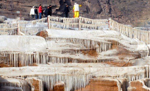 受连日来的强冷空气影响,在地跨晋陕两省的黄河壶口瀑布景区,冰挂、彩虹和壮观的瀑布相映成趣,吸引了众多游人和摄影爱好者。闫锐鹏 摄