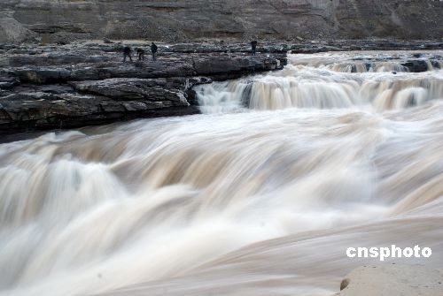 奥运火炬手在壶口瀑布展示"祥云"吸引游人(图)