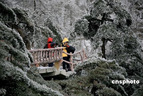 12月22日清晨,国家5A级名胜风景区的安徽黄山迎来今冬第一场大雪。黄山风景区出现雪松景观。中新社发 方也广德 摄