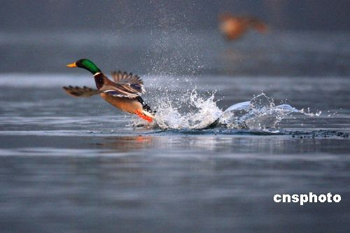 12月24日,一群野鸭在长江重庆江面上竞相飞逐嬉戏戏水,成为寒冬里的一道风景。近来年,重庆生态环境日趋改善和三峡平湖的形成,不少候鸟飞到重庆越冬。中新社发 姜纯 摄
