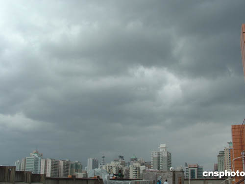 据中央气象台预报,第五号台风“格美”预计可能于7月26日前后在福建中北部至浙江南部一带沿海地区登陆正面登陆。图为7月25日清晨,福州上空乌云满天,天空中伴随着小雨。中新社发 张 斌 摄