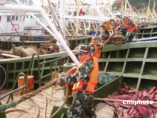 8月8日,据当地气象部门预报,今年第八号台风“桑美”将于9日下午到夜里进入我国东海东南部海面,并逐渐向福建北部到浙江中部一带沿海靠近。受其影响,浙江台州沿海海面风力已增强到8级。为确保人民群众生命财产安全,浙江省台州市渔政、边防、海事等部门已启动海上防台风工作预案,密切关注台风“桑美”的动向,动员各类出海船舶进港避风,并帮助渔船民做好防范台风的准备工作。中新社发 汤永祥 摄