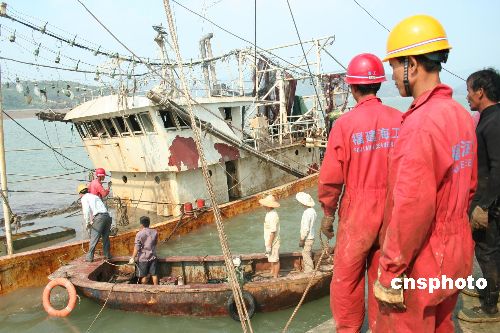 福建福鼎在台风后打捞出19艘沉船