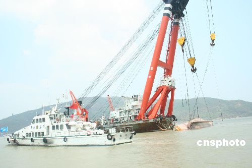 8月24日,中国交通部搜救清障工作组在福建福鼎沙埕一带进行沉船搜救清障工作,由上海海事局、天津海事局扫测大队人员组成的联合扫测组已经完成了沙埕港航道的全部扫测工作;截至8月24日上午12时为止,救助打捞小组共打捞出19艘沉没渔船。中新社发 钟剑宾 摄