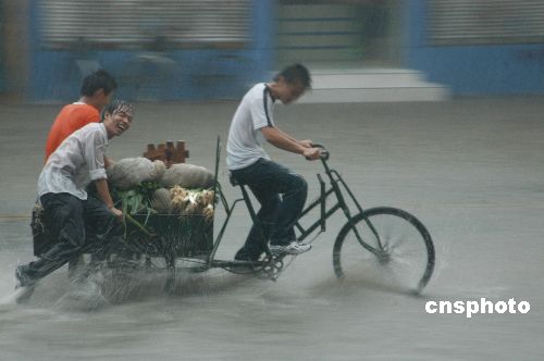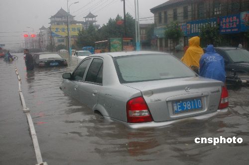 8月28日,河北省邢台市一些市民在突如其来的大雨中艰难行进。当日下午15时30分许,一场大暴雨突降牛城,突如其来的暴雨赶走了多日难耐的闷热,给城市带来清凉。中新社发 黄涛一 摄