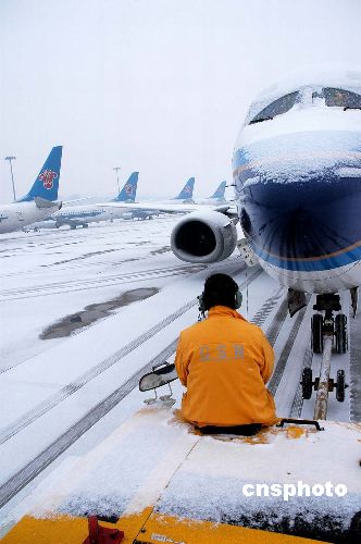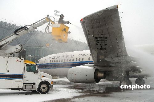 中国南方遭遇罕见的冰雪灾害,中国南方航空公司六万员工目前正奋战在冰雪一线。中新社发 郭军 摄