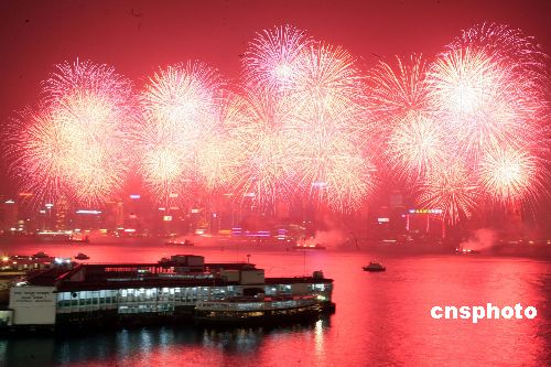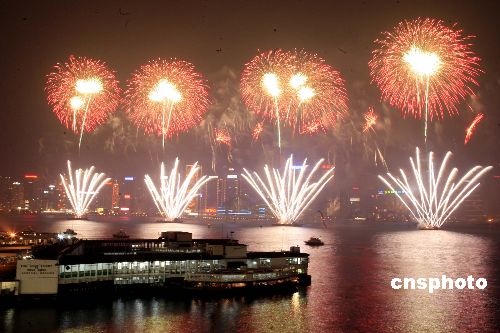 二月八日,农历新年初二,香港维港上空贺岁烟花绚丽璀璨。据介绍,主办单位动用四艘趸船发放烟花,制造出长一千米、高三百米的“烟花屏幕”,是历年来最大型的烟花汇演。烟花汇演上演十幕,历时二十三分钟,其中“北京”字样的烟花更是头一次在香港发放。警方估计有四十万人在维港两岸观赏。中新社发 王丽南 摄
