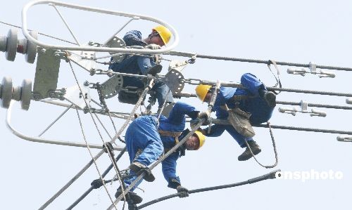 2月23日,全国第一条因暴雪灾害,导致输电线路铁塔倒塌的三峡电力送往华东的大动脉±500千伏湖北宜昌至上海华新直流输电线路,安徽境内抢修工作全部接束,中断37天的500千伏宜华线恢复贯通。1月17日,该输电线路﹟1146-﹟1153段4座位于大别山腹地安徽六安境内崇山峻岭中的巨型铁塔被冰雪压塌,线路严重受损。灾害发生后,安徽省电力公司500多名抢险人员和当地数百干部群众克服天寒地冻、山路陡峭等困难,奋力抢修,经过37天艰苦奋战,运送抢险物资150多吨,终于将4座倒塌铁塔重新修建完成,宜华线路全线贯通。中新社发 陈超平 摄