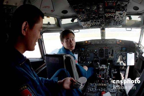 5月13日,中国空降兵6500多名官兵分别乘坐空军远输机奔赴四川重灾区,分五路兵力,分别在什邡、德阳、茂县、等重灾区展开救援。图为空军飞行员精心做好飞行准备。中新社发 谭超 摄