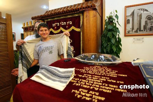 与父母一起到北京观看奥运会的13岁美国少年依斯科,8月12日在北京犹太人中心精心准备即将到来的成人礼仪式,他表示能够在中国度过这个特别的日子格外兴奋。 中新社发 王瑶 摄