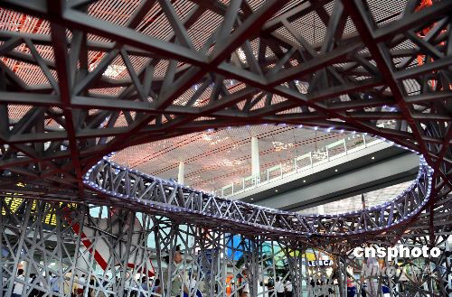 图:首都机场搭建“鸟巢”欢迎奥运宾朋