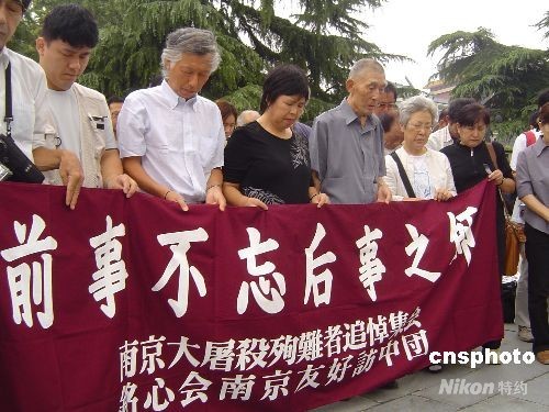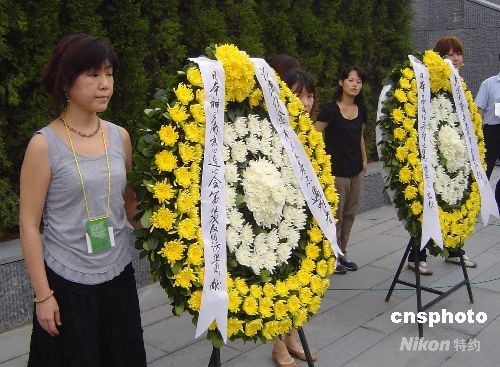 8月15日是日本战败投降63周年,当天上午,日本铭心会·南京第二十三次友好访华团、神户·南京心连心会第十二次访华团和长崎日中友好希望之翼访华团的四十七位日本友好人士,专程来到侵华日军南京大屠杀遇难同胞纪念馆举行国际和平集会,沉痛悼念南京大屠杀三十多万遇难者,呼唤世界和平。中新社发 王国安 摄