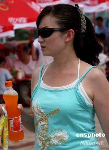 8月17日,青岛分赛场即将开始奥运帆船奖牌轮(决赛)比赛,众多观众装扮时尚来此观战。 中新社发 赵振清 摄