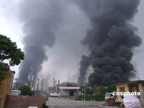 8月26日6时许,广西宜州市郊的广西维尼纶集团有限责任公司车间发生爆炸并引发大火,截至当日15时30分,医院收治伤员增加至55人,死亡人数增至5人,失去联系人员减至14人。 中新社发 杨继武 摄