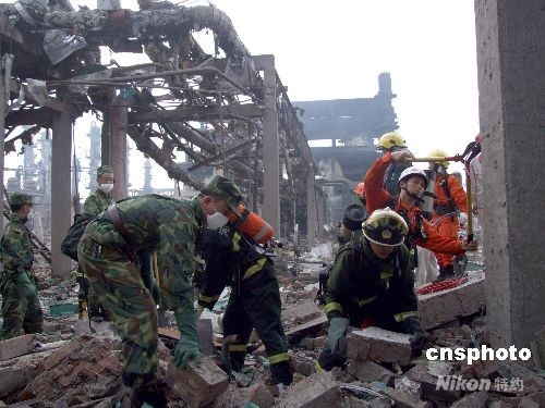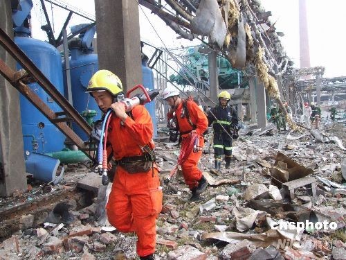 经广西宜州“八·二六”爆炸事故企业广西维尼纶集团有限责任公司核实,截至8月27日11时,广西宜州广维集团“8·26”爆炸事故已造成18人遇难,60人受伤。图为消防官兵继续在现场搜救。中新社发 杨继武 摄