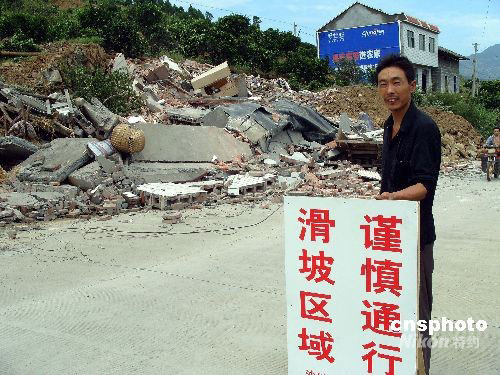 2000年8月31日,三峡库区湖北省秭归县沙镇溪镇香山路滑坡现场,被泥石流掩埋、毁坏的房屋和农用拖拉机。据悉,由于连降大到暴雨,8月30日,湖北省秭归县沙镇溪镇香山路滑坡体发生滑坡,造成大量农田和电力通信等基础设施损坏,7栋农家房屋受损严重,其中一栋房屋被泥石流摧毁掩埋;附近86户324人的安全受到影响。香山路滑坡体位于三峡库区长江上游支流锣鼓洞河左岸、沙镇溪镇三星店村一组和二组,距离集镇约500米,处于香山路滑坡体下方的沙镇溪镇初级中学1200名师生推迟一周开学。由于监测和预警及时有力,目前没有出现人员伤亡。中新社发 刘君凤 摄