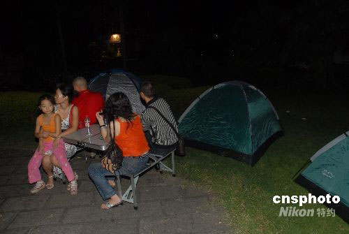 四川攀西地震发生后,灾区频发余震,31日下午再次发生两次有感余震,其中一次震级为5.6级。攀枝花市区31日下午也感受到了强烈震感。当晚,部分攀枝花市民自发到空旷的平地上露营过夜。中新社发 刘子倩 摄