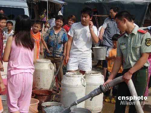 8月30日至9月1日,广西柳州市柳城县因水厂机器爆裂,造成县城停水,4万多人饱受缺水之苦。水厂方面称目前仍在抢修,争取尽快恢复供水。柳城消防官兵为当地民众送水,以解燃眉之急。中新社发 莫洪立 摄