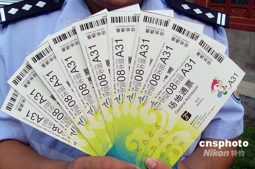近日,北京海淀警方抓获一向游客高价倒卖残奥会门票的违法行为人王某,收缴鸟巢残奥会田径比赛通票10张。此案目前正在进一步审理中。中新社发 海宣 摄