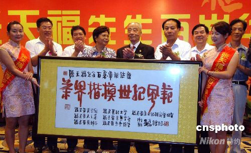 9月17日,中国茶界泰斗张天福百岁华诞庆典在福州举行。张天福1910年出生于名医家庭,福州人,是中国当代著名的茶学家、教育家和茶文化传播者,被誉为当今茶界泰斗。中新社发 刘可耕 摄