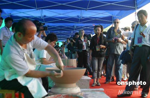 图:禹州钧瓷文化节钧瓷拉坯争霸赛吸引来宾