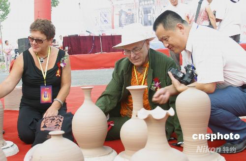 外国来宾被艺人精湛的制陶工艺所吸引。