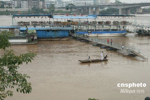 “黑格比”过境带来强降雨,受上游来水影响,9月27日下午,邕江南宁站出现超警戒水位,邕江两岸路面受淹,船上人员划小舟出行。据预计,邕江南宁站将于29日下午出现76.5米洪峰水位(超警戒水位3.5米),防汛形势严峻,有关部门正在组织受洪水威胁地区民众转移到安全地带。中新社发 林艳华 摄