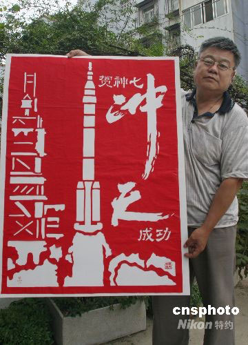 图:剪纸贺“神七”飞天成功