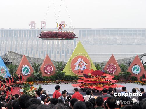 9月27日下午,湖北宜昌三峡工程下游,数万中外宾客在三峡大坝截流纪念园汇聚成欢乐的海洋,第九届中国宜昌三峡国际旅游节在这里隆重举行。中新社发 韩玉洪 摄